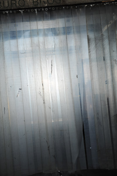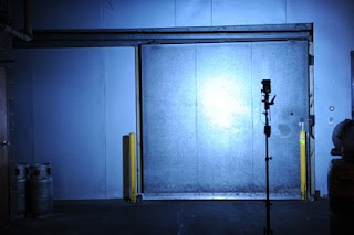 Okay, that was easy enough. Those refrigerated room barriers are translucent. So all I have to do is to stick a speedlight behind them to get a cool background. Should be a piece of cake. Be right back with a test shot.